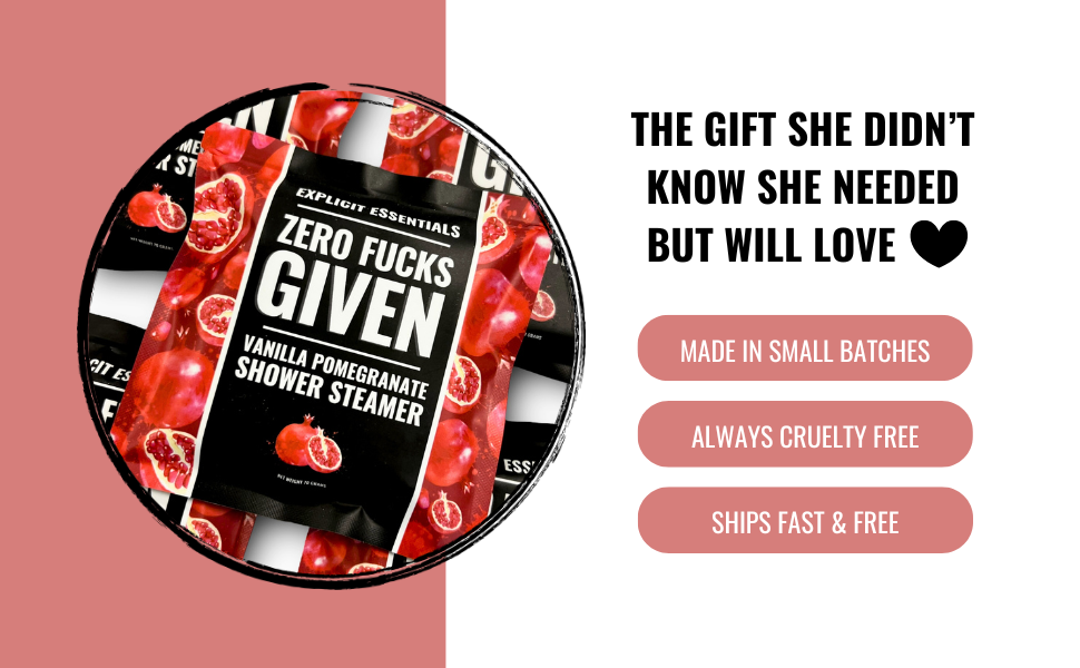 Enhance your shower routine with the luxurious Zero Fucks Given Shower Steamer puck. This Pomegranate Vanilla scented steamer transforms your ordinary shower into a tranquil escape. As the steam rises, it carries the refreshing aroma of pomegranate vanilla, promoting a calming atmosphere that eases away stress and tension. Each steamer is infused with fragrance oils, providing a burst of revitalizing scent. Whether you want to relax after a tiring day or gift a loved one, Zero Fucks Given Shower Steamer pucks offer the ultimate indulgence.